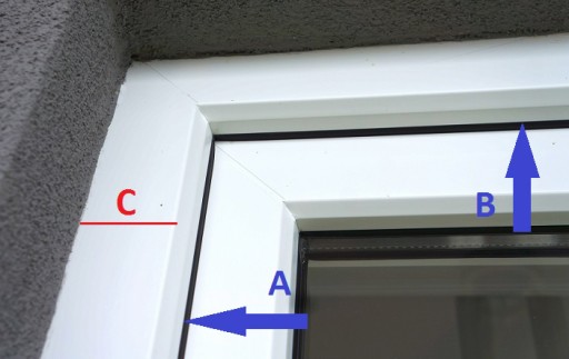 3. Do powyższych pomiarów musi być spełniony warunek: rama drzwi na obwodzie musi być widoczna z muru „C” minimum 3 cm.