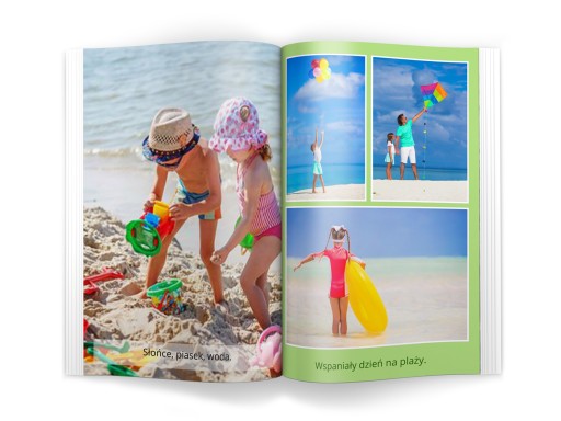 Powyżej pisałem, że w książce można umieścić bardzo wiele zdjęć. Tak naprawdę jednak najlepiej wyglądają zdjęcia bardzo duże, najlepiej na całą stronę. W większości naszych projektów są one układane właśnie w taki sposób. Przeczytaj więcej w opisach poszczególnych projektów.