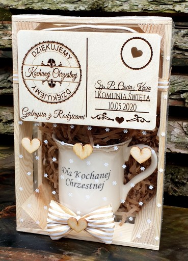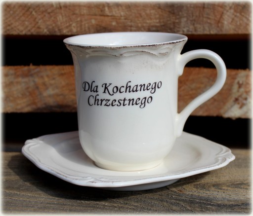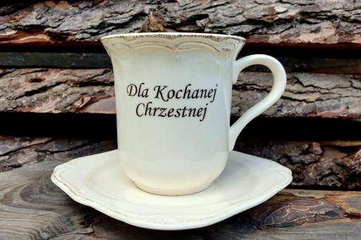 - 1szt. ceramiczny kubek z nadrukiem "Dla Kochanej Chrzestnej" lub "Dla Kochanego Chrzestnego".