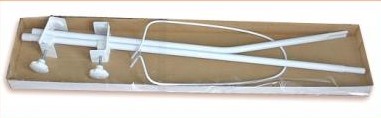 - Stelaż składa się z dwóch połączonych ze sobą rurek,na których umieszczone są dwa uchwyty z mocującymi śrubami.Uchwyty można dowolnie przesuwać na rurce,jak również dostosować do grubości elementów na których umieszczony jest stelaż