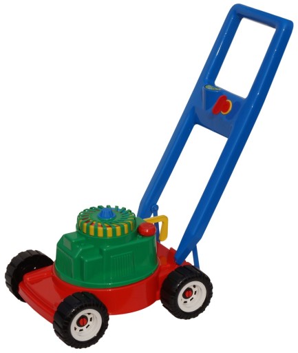 Podczas zabawy kosiarką słychać terkotanie kółek