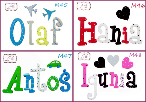 - W wiadomości dla sprzedającego podaj nam : imię które zamawiasz, nr wzoru który wybrałeś i rodzaj dekorów ( np.: Zamawiam imię Igusia, wzór nr M34 + 2xmotylek i 1 serce lub : Zamawiam imię Bartek, wzór nr M26 + 3xsamolot)