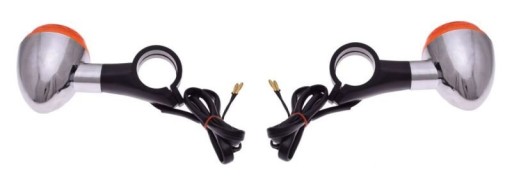 Kierunkowskazy HONDA Kierunkowskaz ma pomarańczowy klosz, chromowaną obudowę, żarówkę 12V/23W, do zamontowania na lagi od średnicy 39mm (średnica wewnętrzna obejmy w maksymalnym zacisku). Migacz jest gotowy do podłączenia (zakończony złączką).