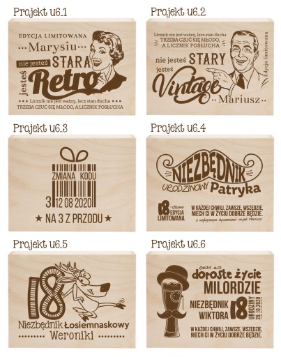 - Po zakupie prosimy o podanie numeru projektu, imienia Jubilata oraz daty jaka ma zostać umieszczona na pudełku.