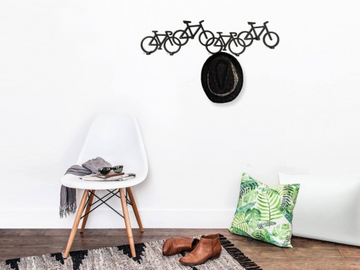 Piękny delikatny wieszak, z ładnie zestawionymi rowerami.