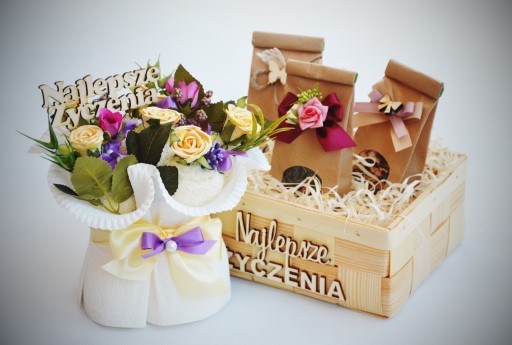 - opakowanie z celofanu z bilecikiem na życzenia - otrzymujesz prezent gotowy do wręczenia.