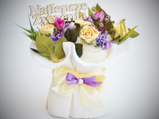 - bukiet z 3 grubych ręczników o rozmiarze 30x50cm,