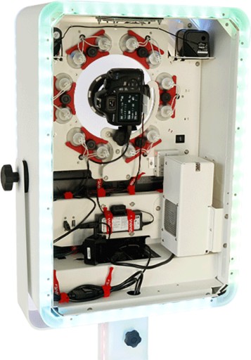Kompaktowa i efektowna fotobudka z płynną regulacją pochylenia korpusu.