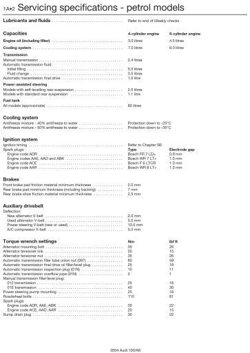 Książka nie zawiera danych do wersji benzynowych V6, Quattro, S4 i S6.