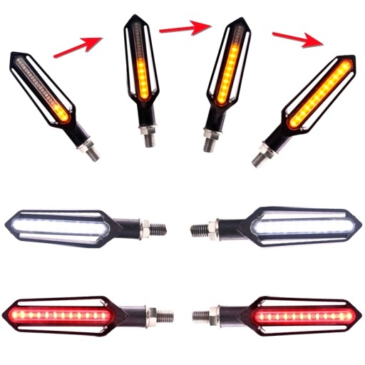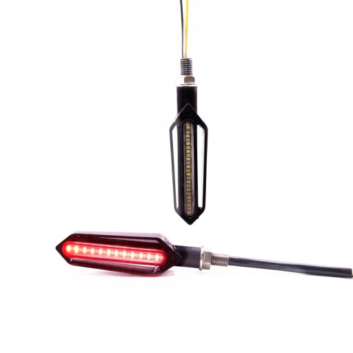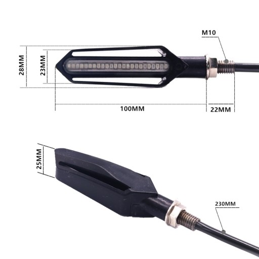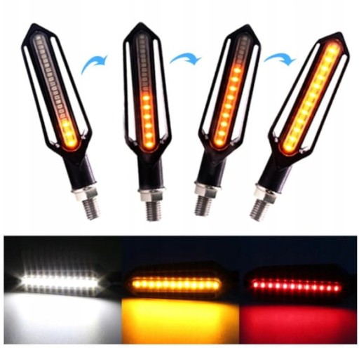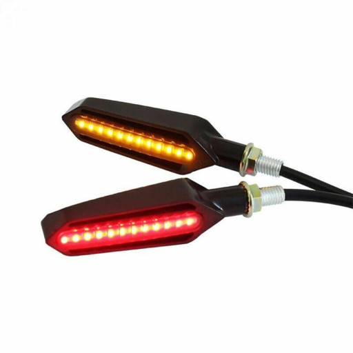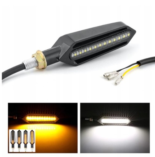 Bardzo ładny kształt oraz mocne diody LED (24 LED SMD 3528 SMD 12v) gwarantują długoletnie użytkowanie. Kierunkowskazy montowane na gwint M10 wyposażone w elastyczne ramię.