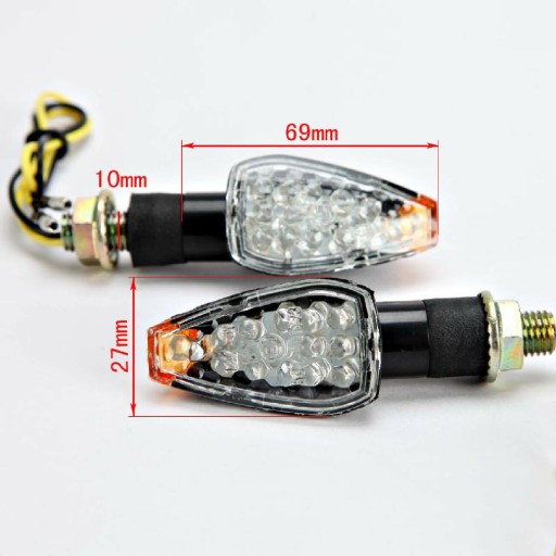 Bardzo ładny kształt oraz mocne diody LED (12 LED SMD 12v) gwarantują długoletnie użytkowanie. Kierunkowskazy montowane na gwint M10 wyposażone w elastyczne ramię.