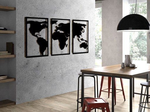 Dobrze zamontowana mapa tworzy piękną i elegancką kompozycję dla każdego wnętrza (pokój, salon, biuro, pracownia).