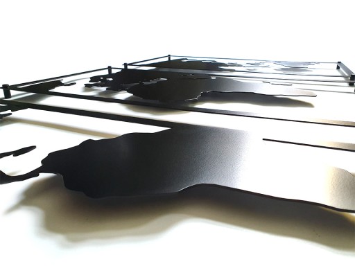 Mapa została podzielona i osadzona w trzech równych ramach, które proporcjonalnie i w optymalny sposób zawieszone mają długość 1200mm.