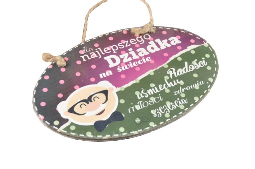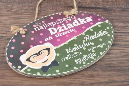 Piękna Zawieszka TABLICZKA drewniana .W kolorowa z napisem DLA NAJLEPSZEGO DZIADKA NA ŚWIECIE .