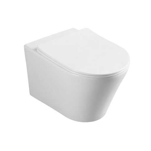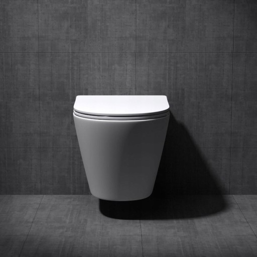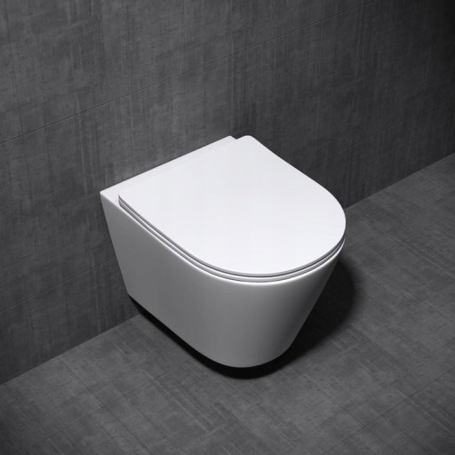 Muszla wykonana jest z ceramiki sanitarnej w kolorze śnieżnej bieli. Jej rozmiar pozwala na optymalne wykorzystanie przestrzeni, a innowaycjny systemem Rimless zapewnia funkcjonalność. W komplecie z muszlą dołączona jest deska wolnoopadająca SLIM wykonana z duroplastu, posiadająca metalowe zawiasy.
