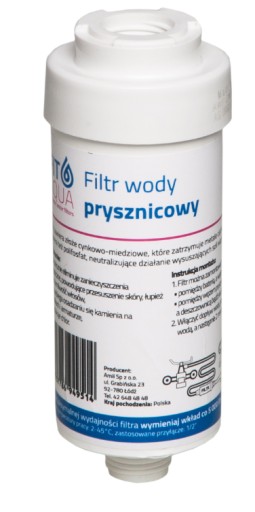 - zawiera KDF – wysokiej jakości złoże cynkowo-miedziowe, które neutralizuje wysuszające działanie chloru i soli wapnia i magnezu. Filtr zatrzymuje nikiel, chrom i metale ciężkie, a także grzybnie i bakterie.