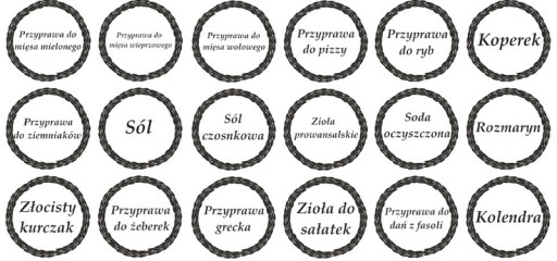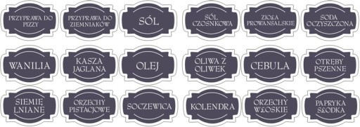 Przedmiotem aukcji jest arkusz 200 naklejek na pojemniki do przypraw , ziół oraz innych artykułów sypkich. Dzięki nim wszystkie przyprawy będą znacznie łatwiejsze do znalezienia. Raz na zawsze skończy się odwieczny problem z otwieraniem i szukaniem właściwej przyprawy, a samo przyrządzanie posiłku stanie się szybsze i prostsze. Dodatkowo dzięki niepowtarzalnemu wzornictwu etykiety na słoiki z przyprawami stanowią element dekoracyjny.