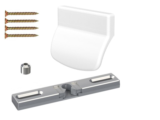 - Zatrzask dopasować do ramy okna na wysokości rolki, tak by rolka swobodnie wpadała w rowek zatrzasku, po czym dokręcić odpowiednimi wkrętami. Montaż rolki zatrzasku na skrzydle Rolkę zatrzasku montujemy na zasuwnicy (listwa skrzydłowa okucia współpracująca z klamką) przy pomocy wkrętu załączonego w zestawie.Wkręt należy wprowadzić do pierwszego otworu usytuowanego nad kasetą zasuwnicy. Montaż zatrzasku na ościeżnicy Zatrzask należy ustalić w położeniu umożliwiającym współpracę z rolką usytuowaną na zasuwnicy i zamontować element na ościeżnicy drzwi balkonowych. Położenie elementu ramowego (w zależności od profilu drzwi balkonowych) Montaż uchwytu balkonowego Przyłożyć uchwyt do krawędzi profilu skrzydła od zewnątrz, na wysokości klamki. Przykręcić wkrętami (w zestawie), a następnie nałożyć osłonę maskującą wkręty.