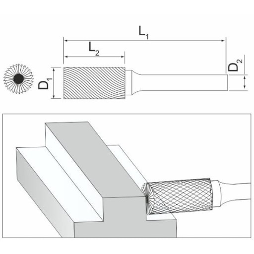 ФРЕЗА ЦИЛИНДРИЧЕСКАЯ ПЕРЕДНЯЯ НАПИЛЬНИК ТИПА B 16 мм