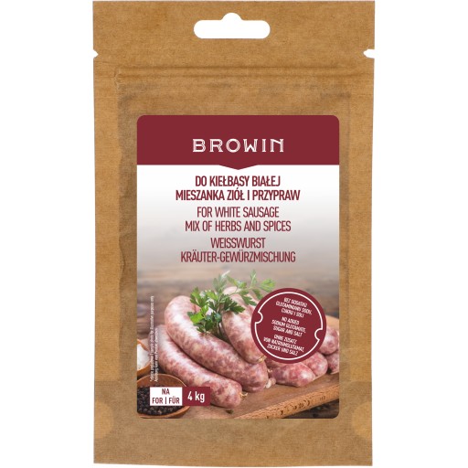Do kiełbasy białej - Mieszanka przypraw i ziół to starannie dobrana kompozycja nadająca tradycyjny majerankowy smak i aromat białej kiełbasy.