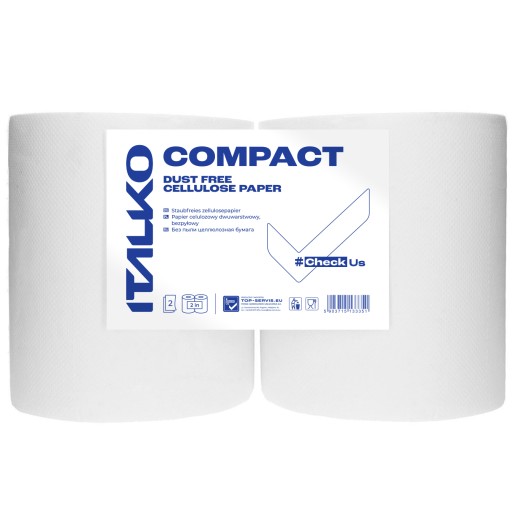 Czyściwo papierowe białe, solidnie nawinięte, posiada perforację ułatwiającą odrywanie odcinków papieru z roli.