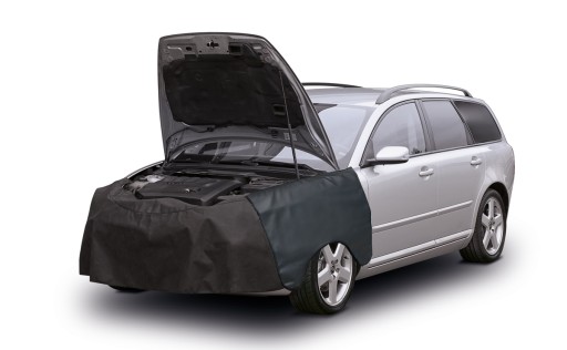 - Pokrowiec na przód serwisowanego samochodu chroni przed zarysowaniem i zabrudzeniem, co ułatwia pracę mechanikom,