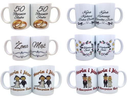 z wyhaftowanym motywem oraz dedykacją (dowolną), plus zestaw 2 kubków.