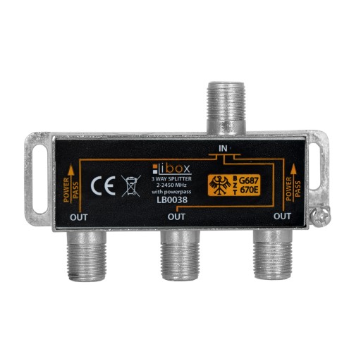 Bardzo dobrej jakości rozgałęźnik firmy Libox, który umożliwia rozdzielenie sygnału z zakresu 5 do 2400MHz na dwa osobne sygnały. Ma on zastosowanie w telewizji naziemnej analogowej i cyfrowej DVB-T, kablowej.