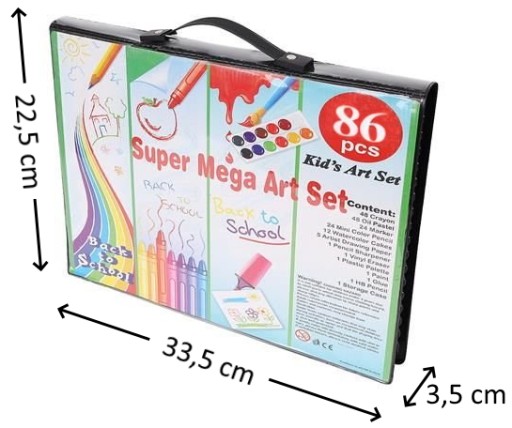 Komplet polecany jest do indywidualnego użytku w domu, jak również znajdzie zastosowanie jako wyposażenie prywatnych szkół oferujących kursy rysunku. Solidny i różnorodny mega zestaw malarski sprawdzi się świetnie jako prezent z wielu okazji i z pewnością ucieszy obdarowanego.