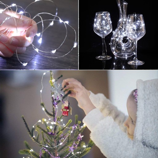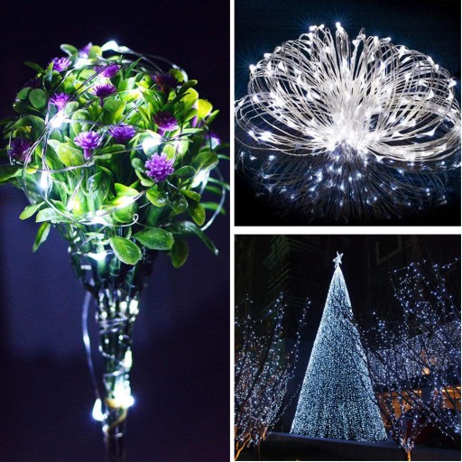 Wodoodporna 2 SZT 5 M 50 Led Drut w Kolorze Srebrnym Lampki Solarne Do dekoracji wewnętrznych i zewnętrznych (Biały)