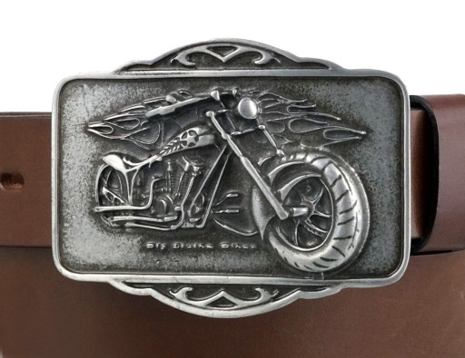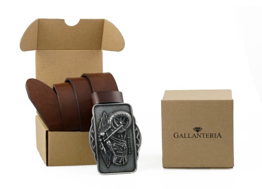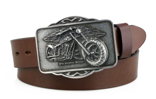 Brązowy pasek to połączenie stylu elegancji i swobody w którym odnajdzie się zarówno płeć męska jak żeńska. Pasek posiada piękną metalową klamrę z wizerunkiem motocykla na srebrnym tle co dodaje mu oryginalności i niepowtarzalności wzoru.