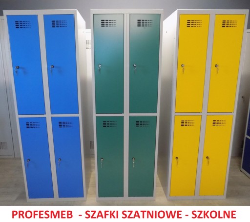 Nowoczesne szafy skrytkowe bhp, pracownicze z czterema schowkami TYP sus 322 w wemo z najnowocześniejszej linii produkcyjnej w Europie Malow, o wymiarach 180x60x50cm czterokomorowe o szerokości komór 30cm x h.90cm. Szafy wykonane są z blachy zimnowalcowanej, spawanej punktowo, drzwi ze specjalnymi wzmocnieniami gwarantującymi sztywność konstrukcji. Drzwi szaf posiadają nowoczesne otwory wentylacyjne z zastrzeżonym znakiem produkcyjnym, dodatkowe otwory znajdują się w ścianach bocznych. Każda komora posiada drążek z haczykami na ubrania, plastikowy wizytownik przyklejany do drzwi.