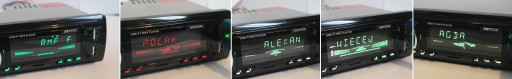 - wyświetla informacje o odtwarzanej piosence z karty lub USB zapisane w ID3 (tytuł, autor, album....)