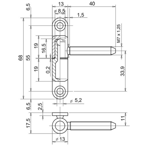 - zawias góry z gwintem (tzw. dziewczynka)