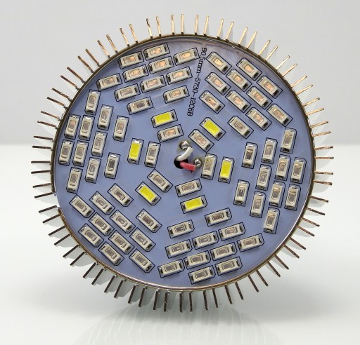 - Każda żarówka zbudowana jest z 78 diod: 42 sztuk czerwonych, 18 sztuk niebieskich, 6 diod białych zimnych, 6 diod IR (podczerwona), 6 diod UV (ultrafiolet)