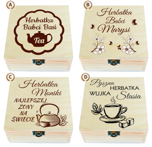 CUDOWNE, DREWNIANE PUDEŁKO NA HERBATĘ Z 4 PRZEGRÓDKAMI!