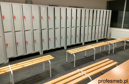 Stelaż ławki szatniowej wykonany został z rurki stalowej. Ławka może być wykorzystana zarówno do urządzenia szatni pracowniczej, szkolnej jak również w klubach fitness i na siłowni Malowana proszkowo na kolor Ral 7035 (popiel). Siedzisko wykonane zostało z trzech listew z drewna liściastego, które zostały polakierowane lakierem bezbarwnym. Nogi ławki wyposażone są w stopki z tworzywa, które zabezpieczają podłogę przed zarysowaniem.