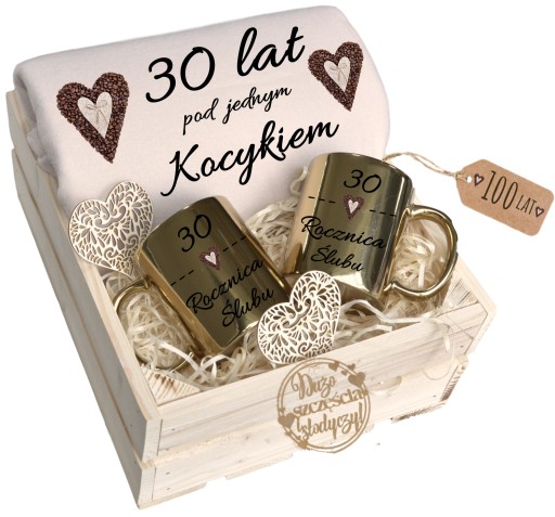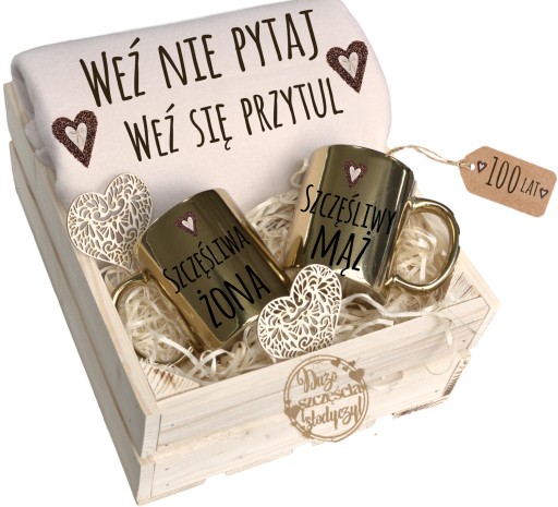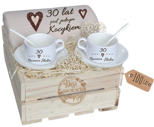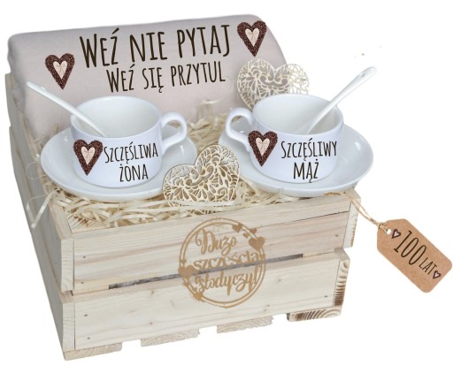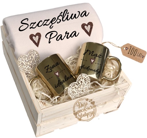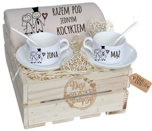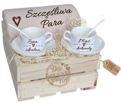 Oryginalny zestaw ECO w drewnianej skrzynce, stanie się wspaniałym prezentem na każdą okazję.Wybierz ten wyjątkowy komplet jako prezent na parapetówkę, ślub lub rocznicę ślubu, a sprawisz obdarowanej parze ogromną radość. Na KUBKACH i KOCU znajdą się ORYGINALNE trwałe nadruki . Tak uroczą formą podarunkową sprawisz, że każde wspólne picie kawy czy herbaty, zamieni się w uroczą chwilę.