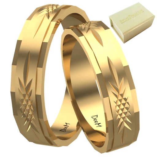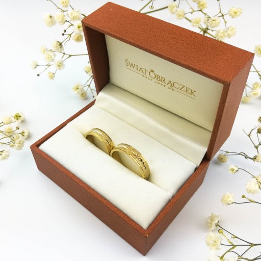 Prezentowany model obrączek ślubnych wykonany jest z najwyższej jakości żółtego, 14 karatowego złota. Obrączki mają płaski profil i są bardzo efektownie zdobione diamentowymi nacięciami po całym ich obwodzie. Ich zakup to pewność wysokiej jakości, która idzie w parze z bardzo atrakcyjną ceną. Obrączki sprawdzą się idealnie zarówno na nowoczesnym, jak i bardziej tradycyjnym ślubie. Gwarantujemy zadowolenie z tego egzemplarza, który wciąż cieszy się niesłabnącą popularnością.