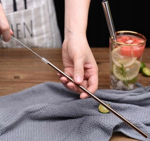 Wielorazowe słomki do napojów można myć w zmywarce lub ręcznie przy pomocy dołączonego czyścika. Szczoteczką doczyścisz rurki nawet z bardzo uciążliwego osadu, na przykład po mrożonej herbacie czy kawie.