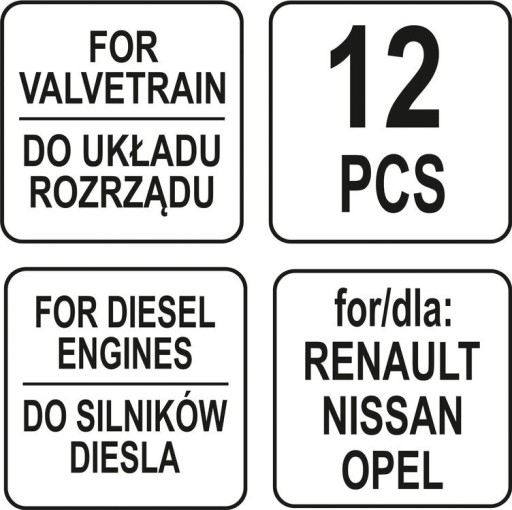 Profesjonalny 12-częściowy zestaw przeznaczony do obsługi układu rozrządu silników diesla. Polecany do specjalistycznych serwisów motoryzacyjnych.