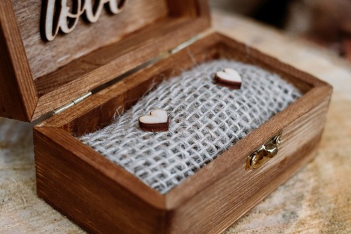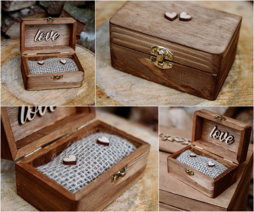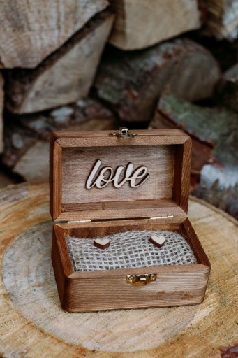 ✔️ pudełeczko na obrączki (juta, 2 drewniane serduszka, wymiary: 10 x 6 x 5 cm)
