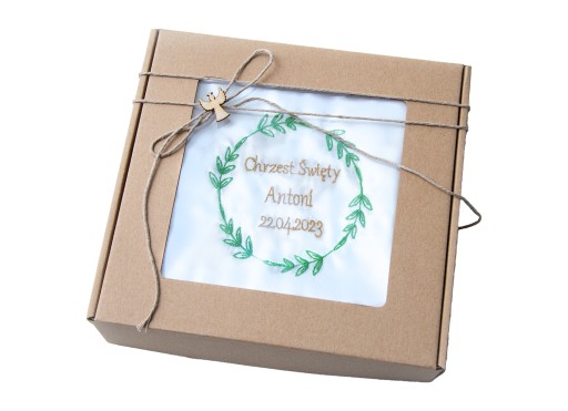 Szatka zapakowana jest w eleganckie pudełko z okienkiem, które umożliwia jej przechowywanie na lata.