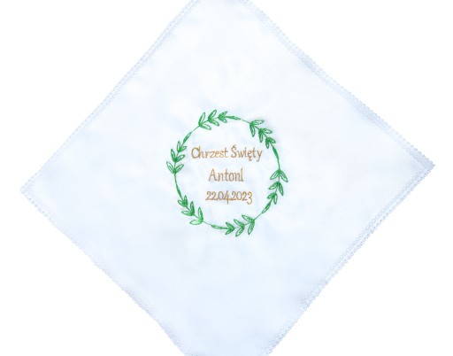 Delikatna atłasowa szatka do Chrztu Świętego o wym. 25 x 25 cm