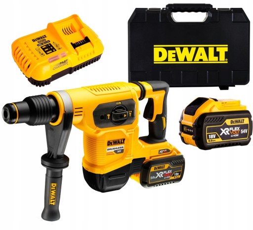 - Dzięki wysokowydajnemu bezszczotkowemu silnikowi 54V zasilanemu bateriami Li-Ion w technologii XR FLEXVOLT 18V/54V o pojemności 9Ah/3Ah młotowiertarka DeWalt DCH481 osiąga moc i wydajność jak w przypadku urządzenia sieciowego jednak przy nieograniczonej mobilności.