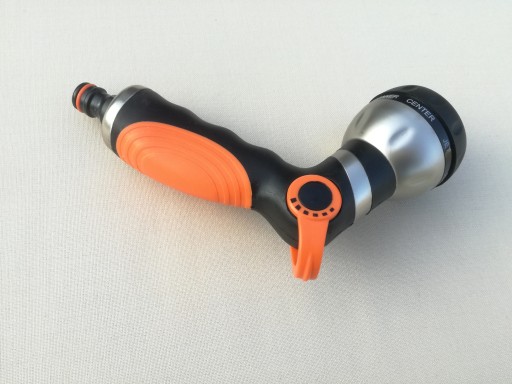 - pistolet posiada 8 ustawień strumienia wody - pozwala podlewać różnymi strumieniami, tj: shower (prysznic), full (pełny), mist (mgła), soaker (krople), center (środek), jet (strumień), flat (płaski), cone (stożek)