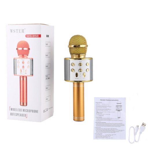 Mikrofon karaoke to doskonały gadżet dla wszystkich którzy uwielbiają śpiewać. Urządzenie posiada dwa wbudowane głośniki, które zapewnią doskonałe wzmocnienie głosu. Dzięki mikrofonowi karaoke, możesz śpiewać zawsze i wszędzie – wbudowana bateria litowo-polimerowa pozwoli nawet na kilkugodzinne działanie urządzenie bez konieczności podłączenia do zasilania.Śpiewanie tlko blisko Mikrofonu . Dzięki redukcji szumów głos będzie brzmiał wyraźnie i bez zakłóceń a opcje ustawienia basów i sopranów oraz pogłosu sprawią, że śpiew nabierze nowego wymiaru. Urządzenie posiada możliwość połączenia z telefonem i nagrywania głosu – idealny jako narzędzie do wywiadów, dodatkowy rejestrator dźwięku podczas nagrywania video, do podcastów radiowych czy livestreamów.