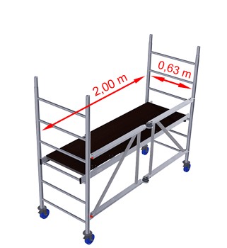- Antypoślizgowy pomost roboczy (2,00 m x 0,60 m) jest odporny na warunki atmosferyczne