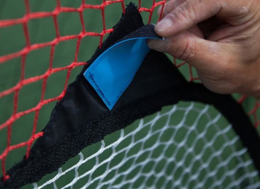 Matę łatwo montuje się do bramki za pomocą elastycznych uchwytów.