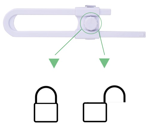 2. Pokrętło ustawione na otwartej kłódce otwiera zabezpieczenie i suwakiem można poruszać, przytrzymując oba przyciski.